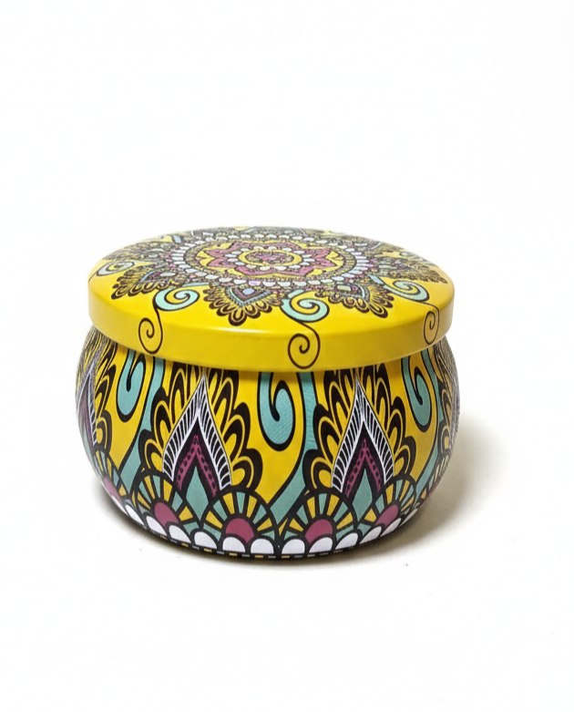 Vela Aromática feita com cera de coco e pavio de algodão.
